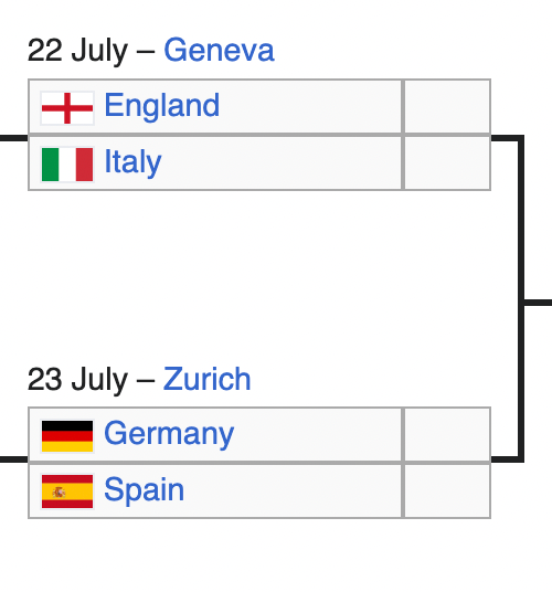 Spain moves on to the semifinals to take on their toughest competition yet. All of the other teams remaining have faced top teams already, so it will be interesting to see how the reigning World Champions meet this moment in their campaign.